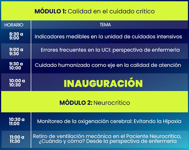 Este evento de alta especialidad en enfermería crítica y terapia intensiva reunirá a expertos nacionales e internacionales para compartir conocimientos, avances científicos y estrategias innovadoras en el cuidado del paciente en estado crítico.